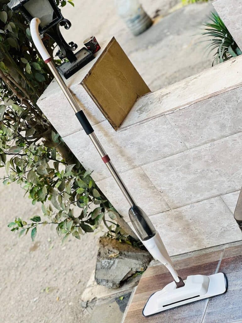 عملية جدًا ومناسبة لكل أنواع الأرضيات، ومعاها بخاخ مدمج للمعطر أو المنظف لنتائج تنظيف مثالية 💦