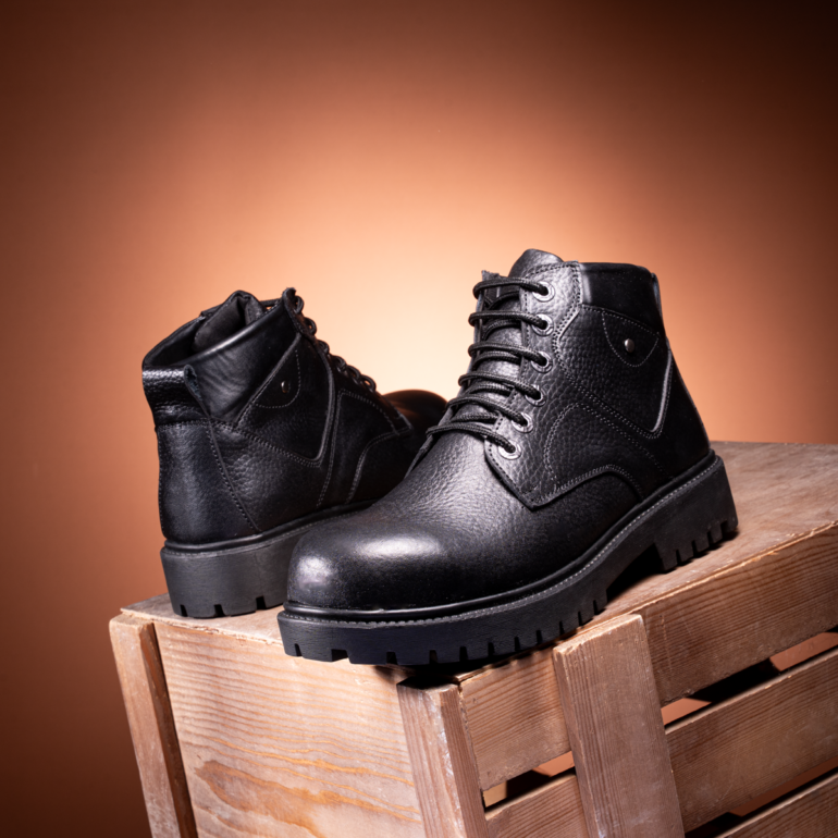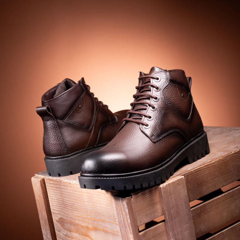 ارتقِ بإطلالتك مع هاف بوت رجالي أنيق مصنوع من جلد طبيعي فاخر بالكامل لضمان المتانة، الراحة، والمظهر الكلاسيكي المميز.