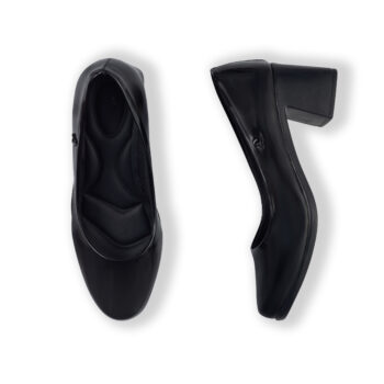 الحذاء بكعب ثابت وسمكه 6 سم، وكمان النعل مصنع من مادة البوليريتان الخفيفة والمريحة، ومقاوم للتزحلق لضمان الثبات أثناء المشي.