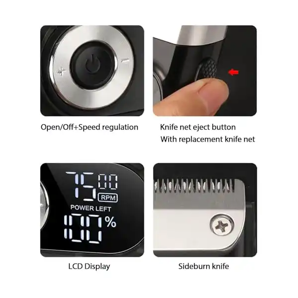– ماكينة حلاقة كيمي 2026 هي ماكينة حلاقة من الرقائق المعدنية مع شاشة LED، لا تحلق اللحية فحسب، بل تحتوي أيضًا على ماكينة حلاقة شعر قابلة للسحب، وتساعد عائلتك (بما في ذلك الأطفال وكبار السن والكبار) على قص الشعر. توفر لك المال لشراء ماكينة قص الشعر. يمكن لعائلتك مشاركة ماكينة الحلاقة متعددة الأغراض والحلاقة وقص الشعر والإصلاح.