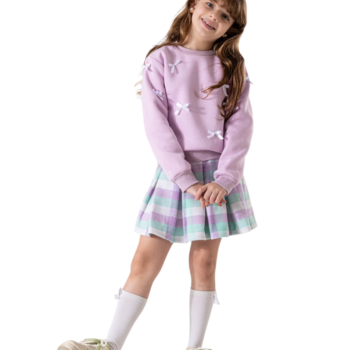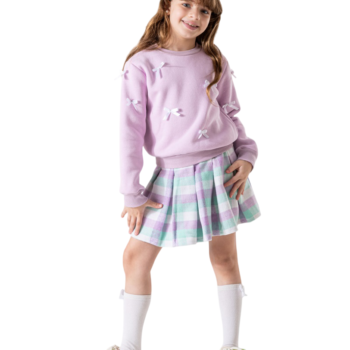 طقم سويتشرت فيونكة طايره لافندر وجيبة كاروه